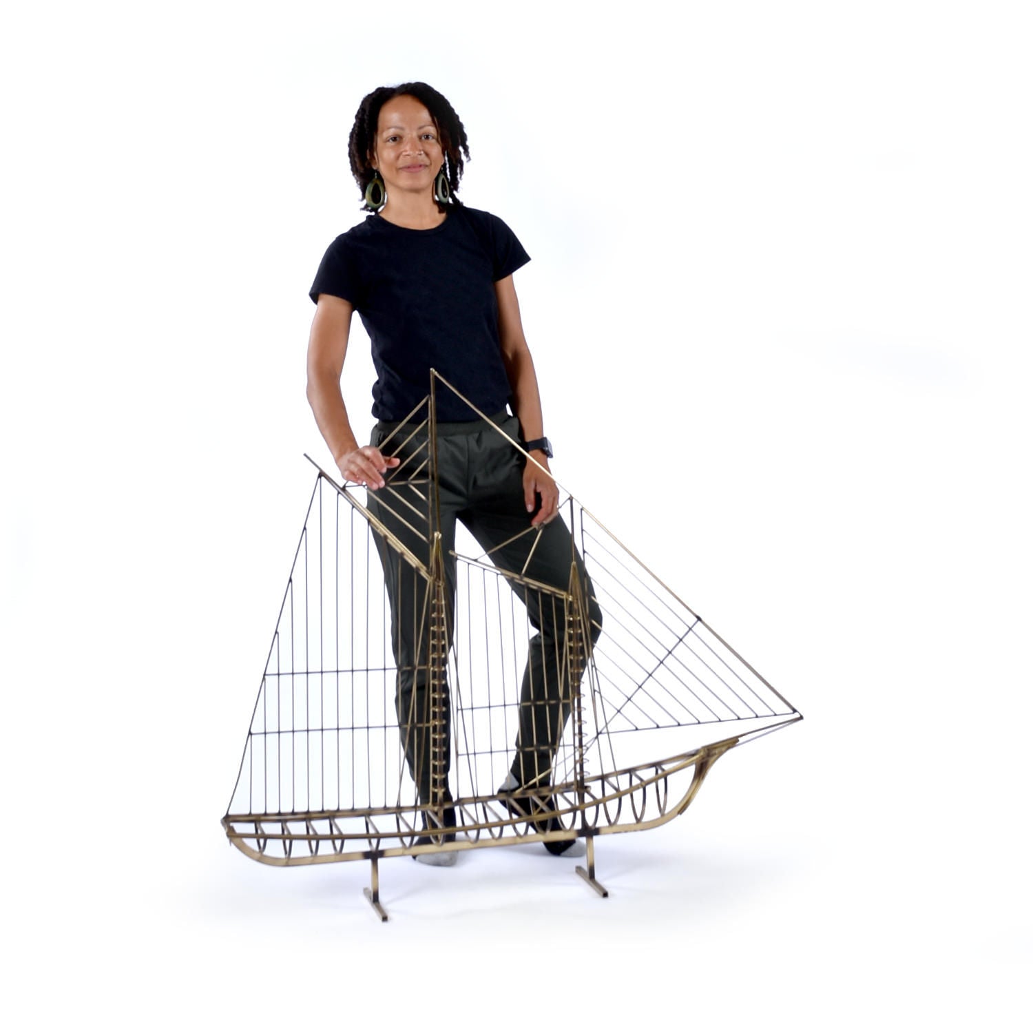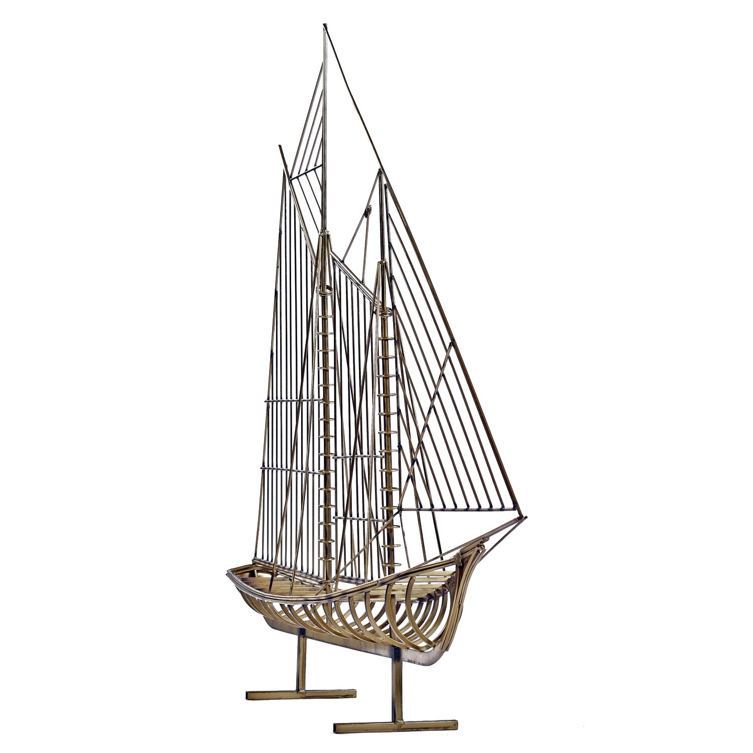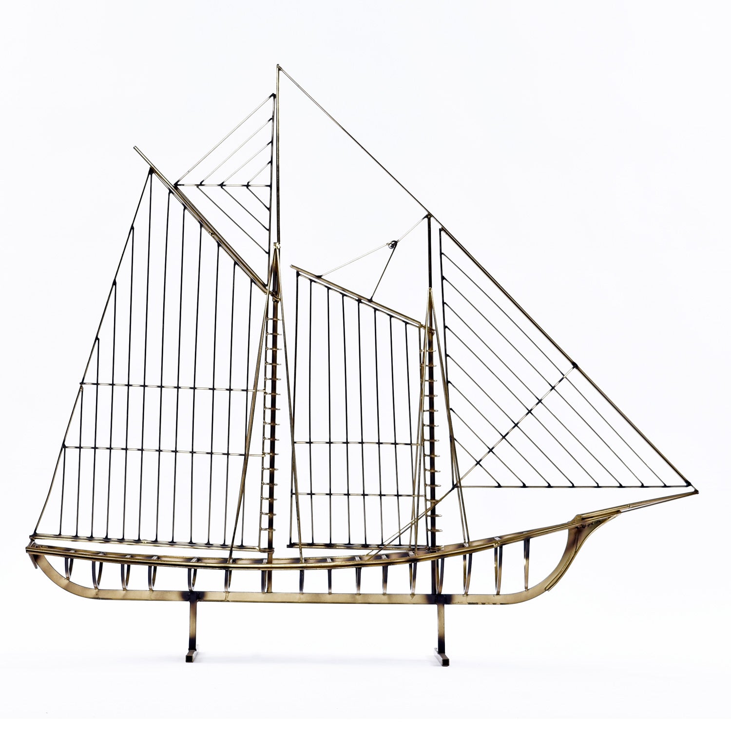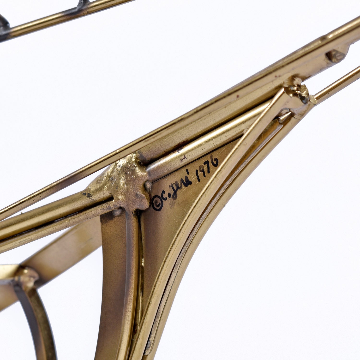 1976 Curtis Jere Brass Wire Galleon Ship Sailboat Metal Sculpture Art