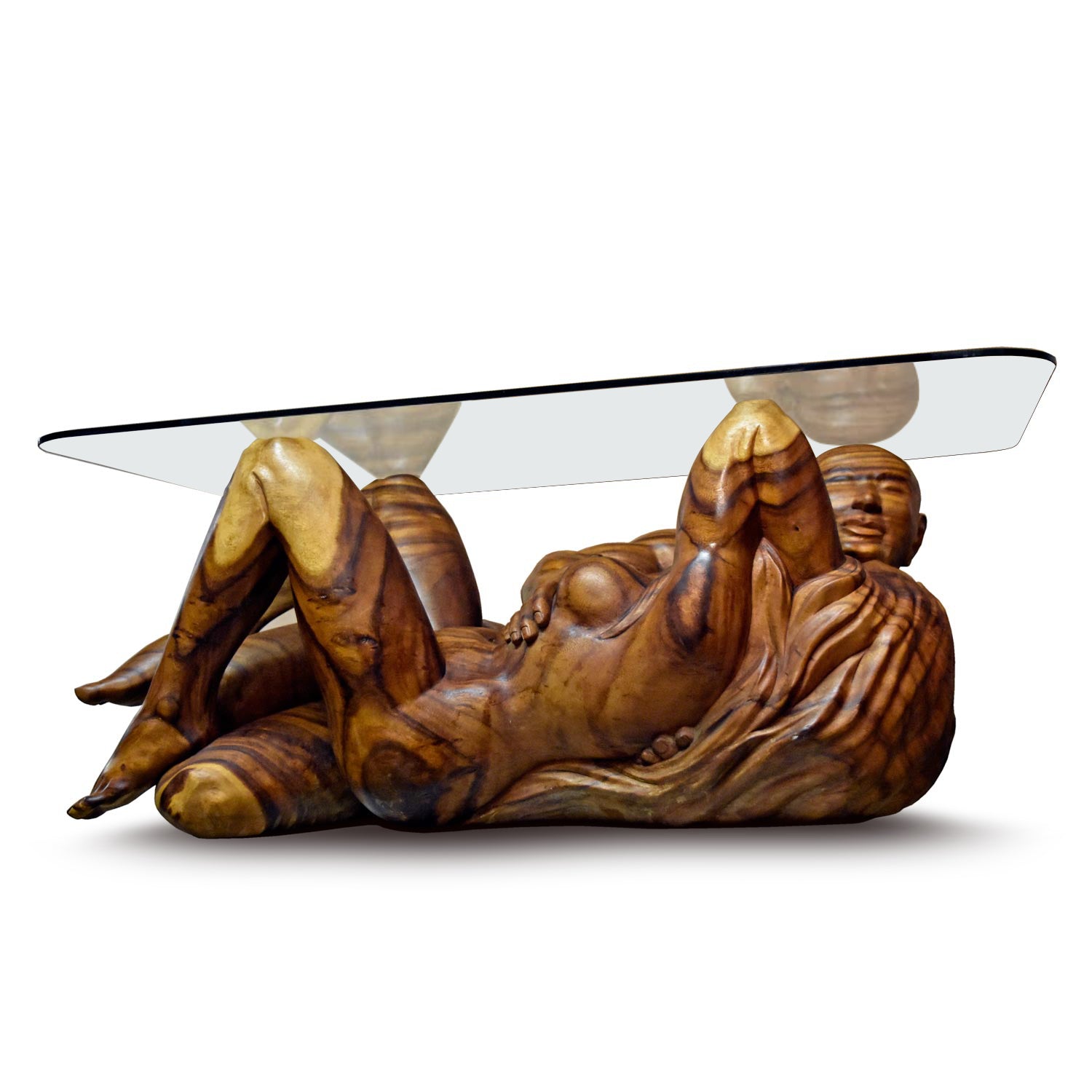 Massive Hand Carved Monkey Pod Exotic Hardwood Lovers Embrace Coffee Table