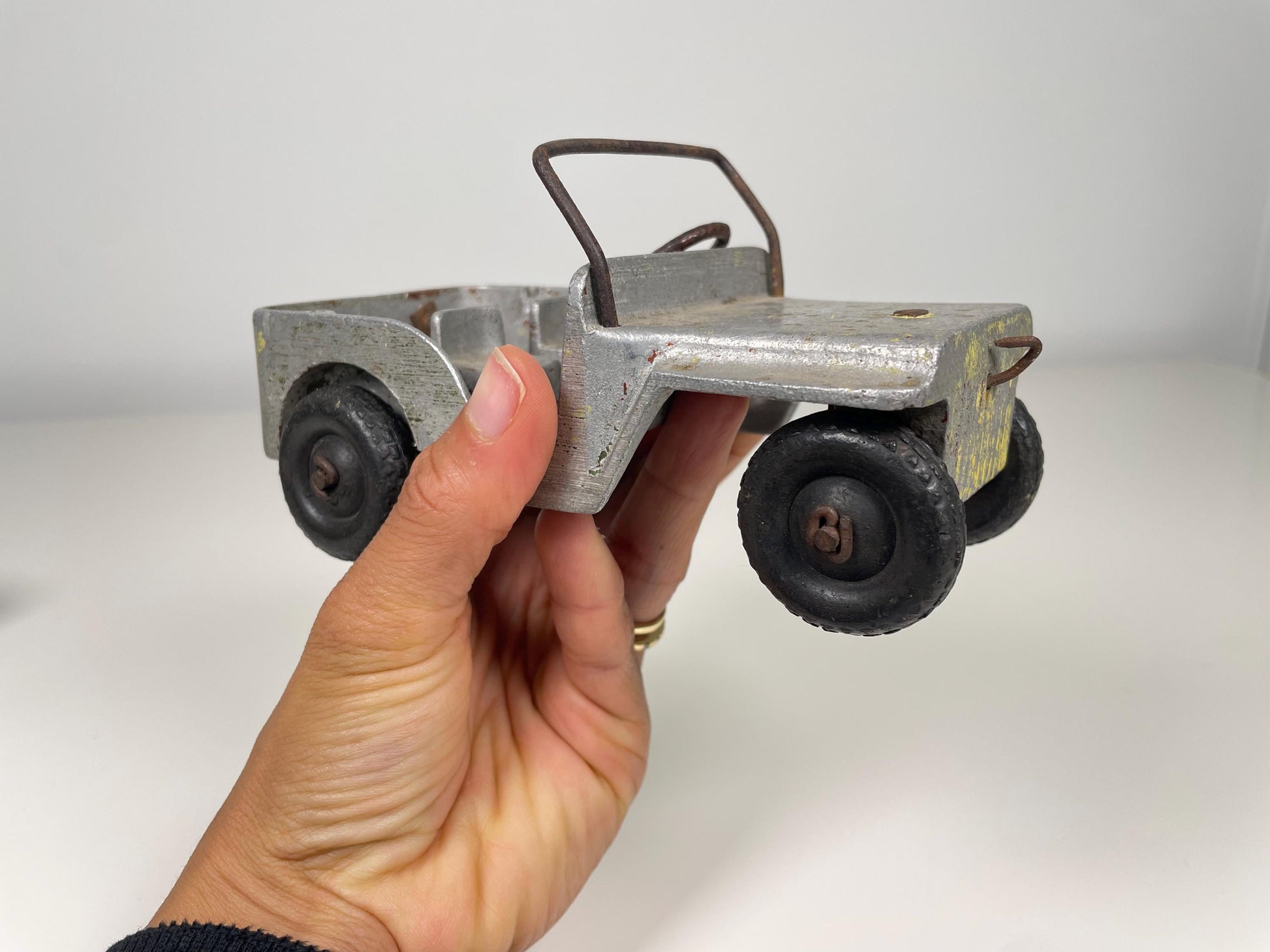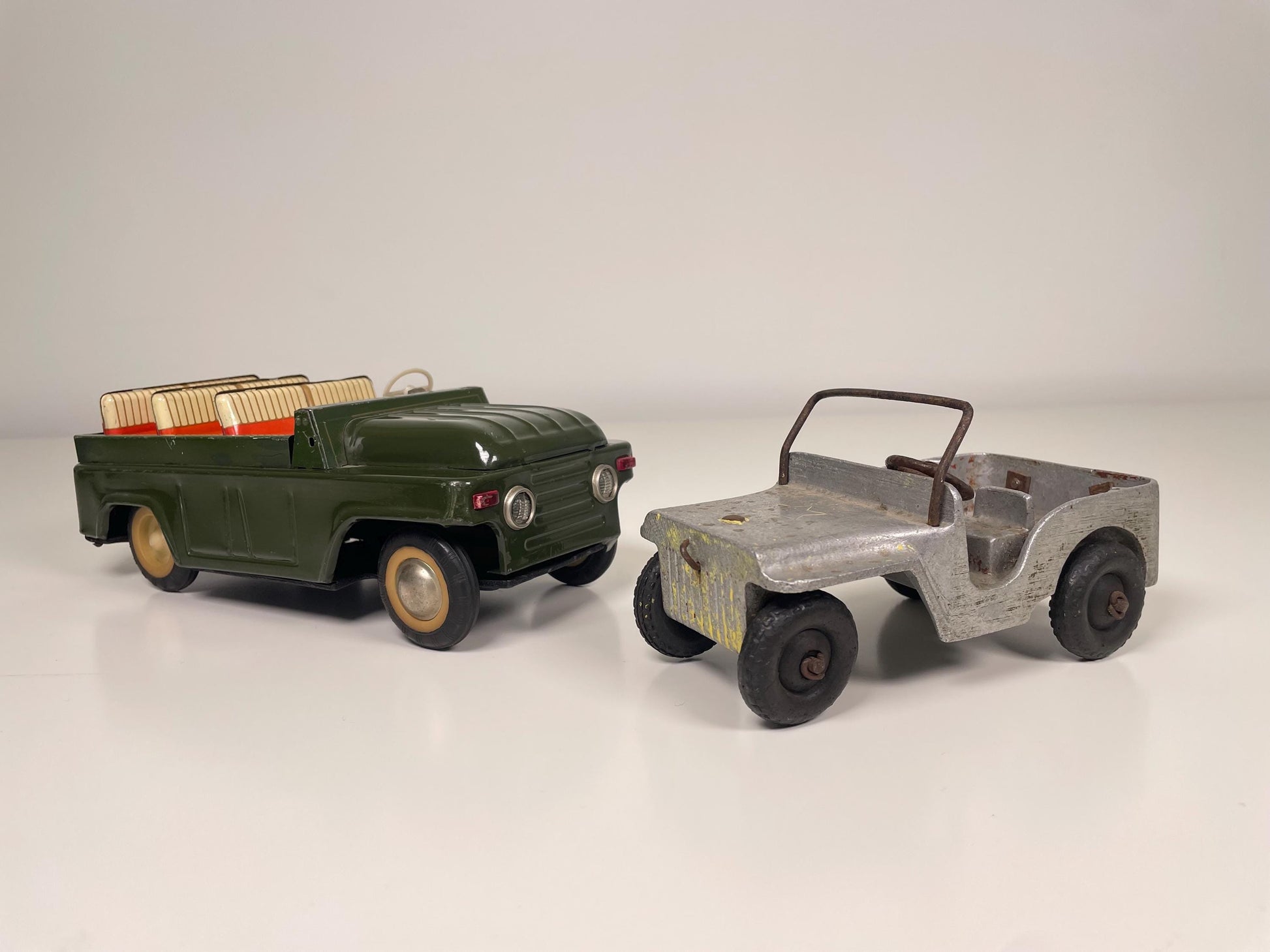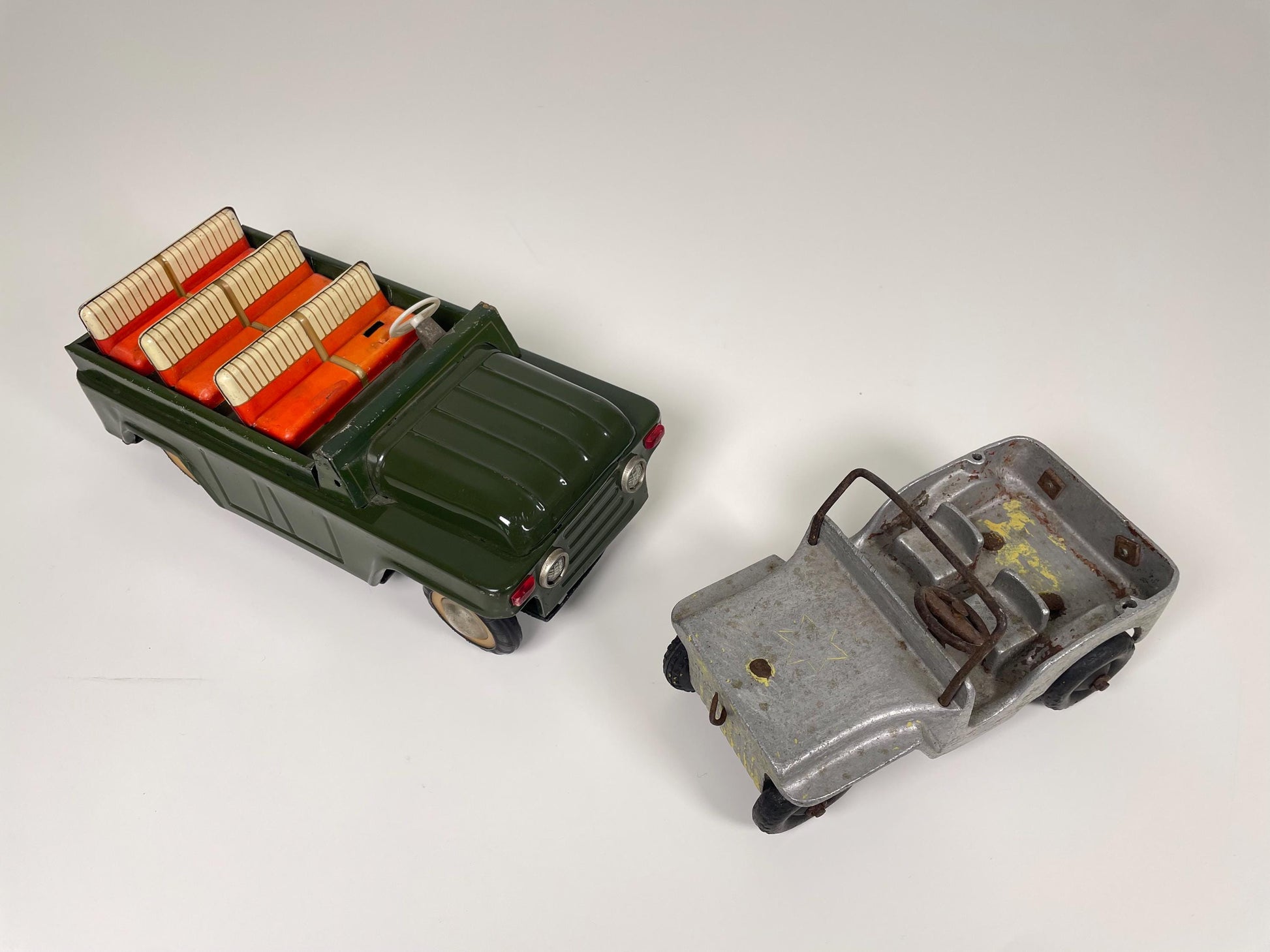 Pair of Vintage Toy Jeeps Open Car 1960s and Metal 1940s Military Jeep