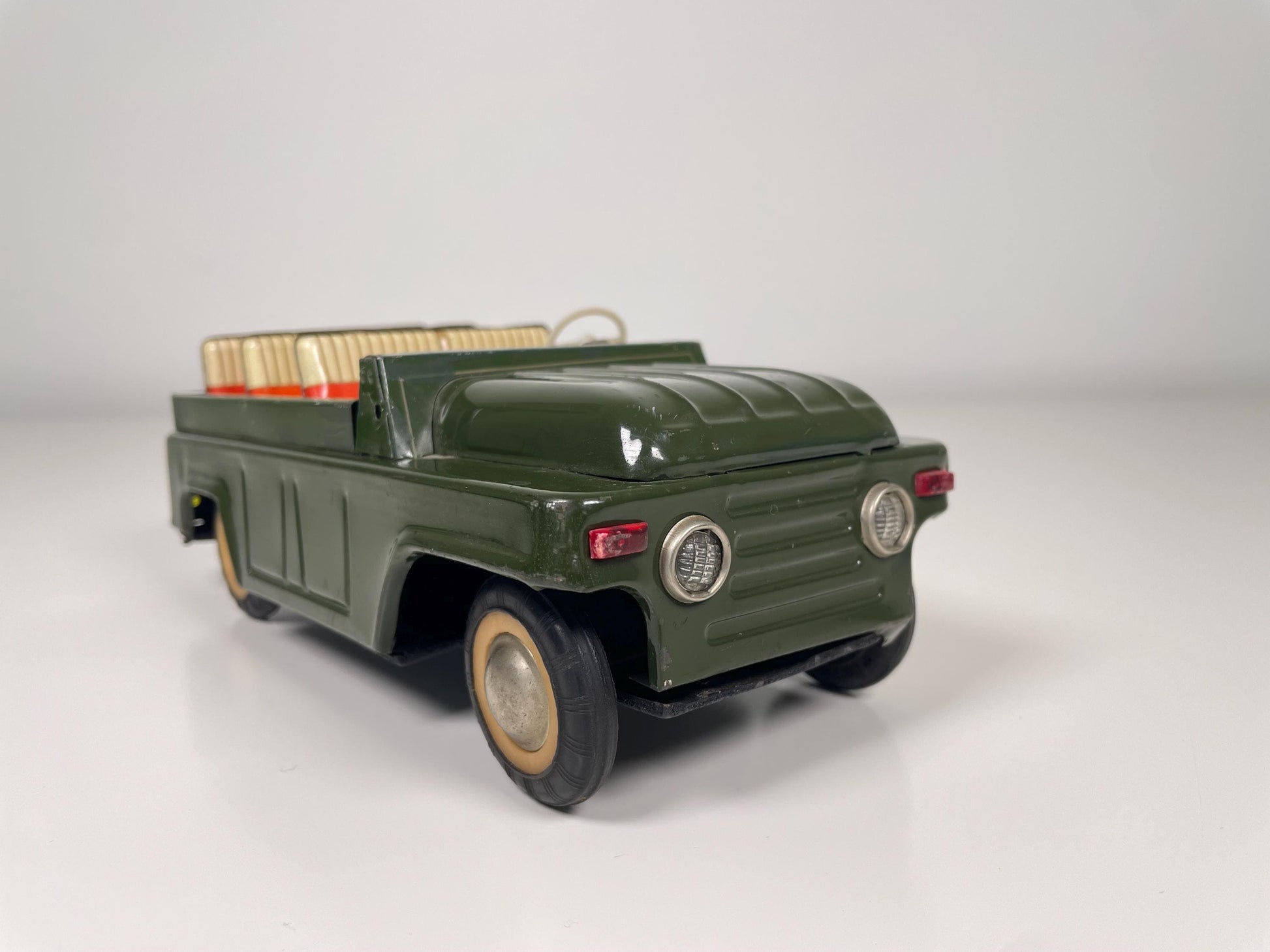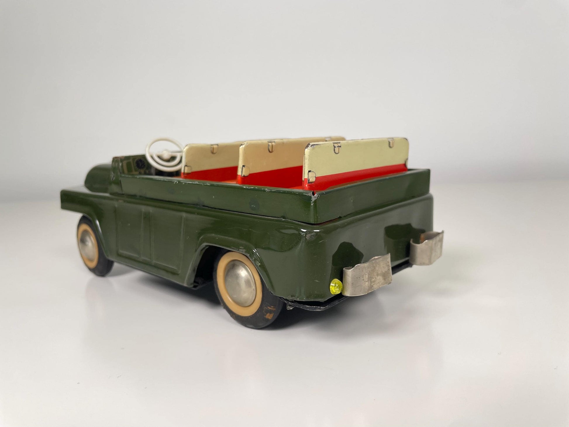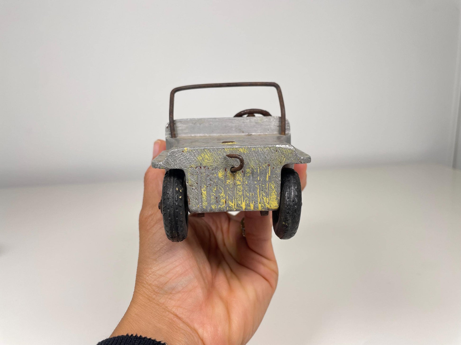 Pair of Vintage Toy Jeeps Open Car 1960s and Metal 1940s Military Jeep