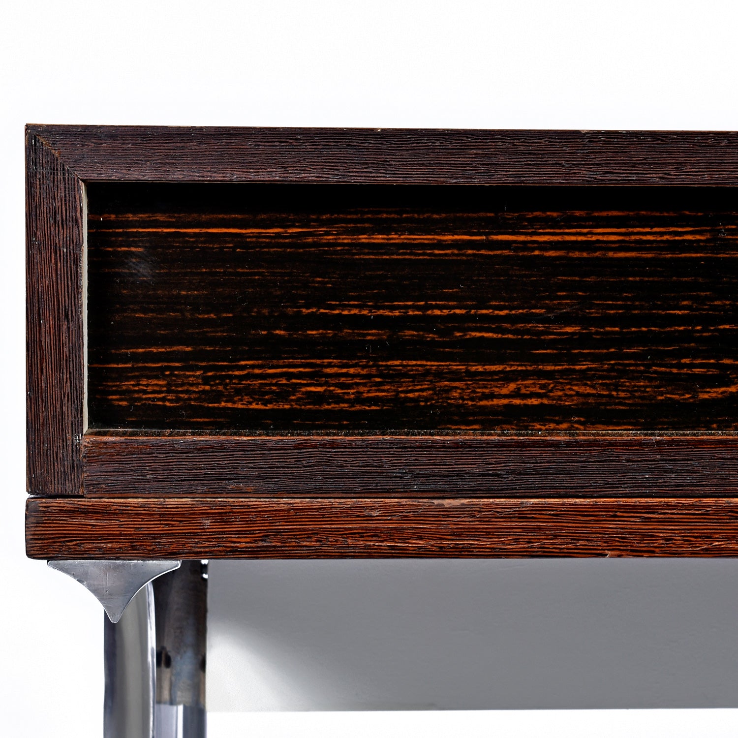 Condition: Refinished. Wear consistent with age and use. New paint on spanner. Original drawers, top and sides have been buffed, with only minor imperfections remaining. Rosewood has been refinished. Only minor imperfections remain on wood. Chrome has been polished and has age appropriate scratches.