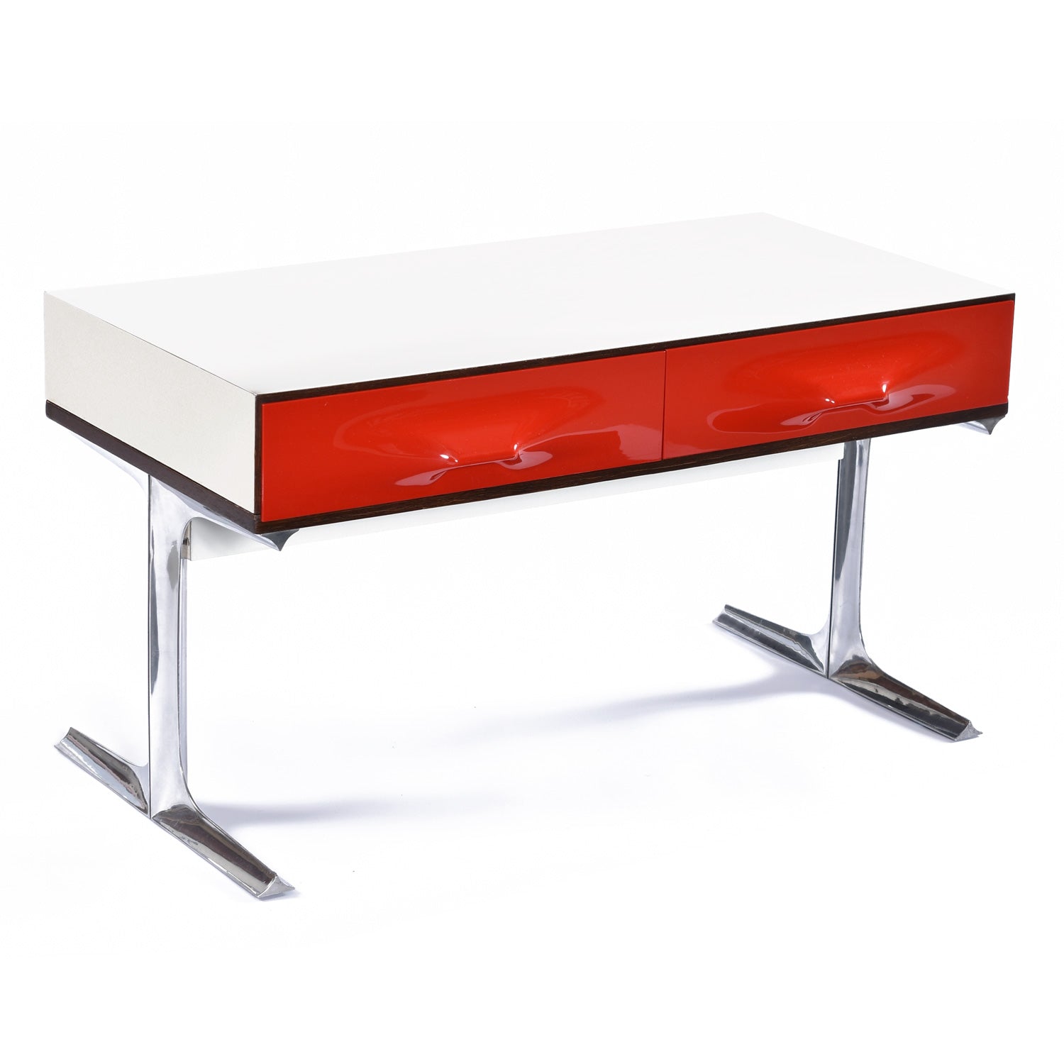 Raymond Loewy DF-2000 Chrome Red Plastic Drawer TV Stereo Console