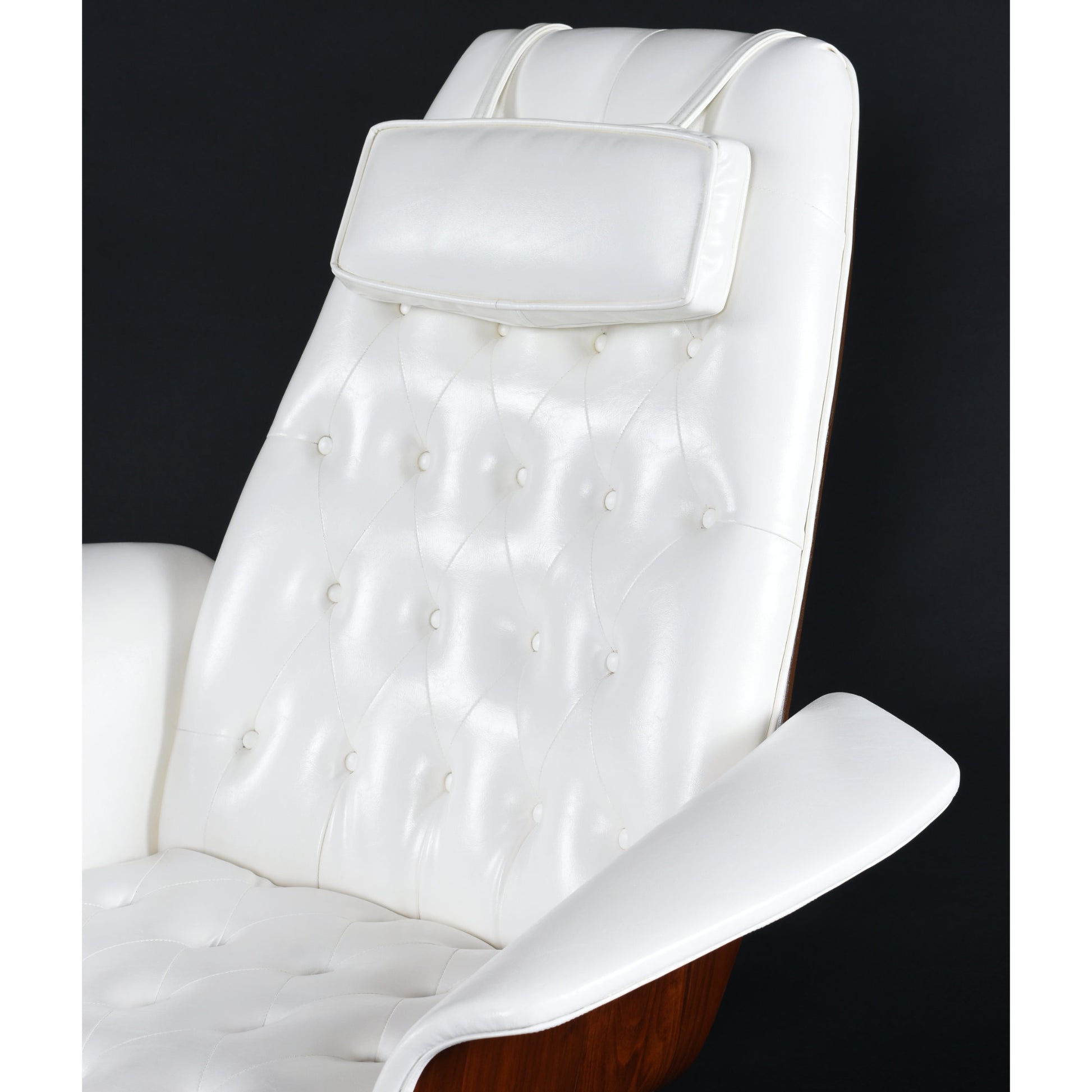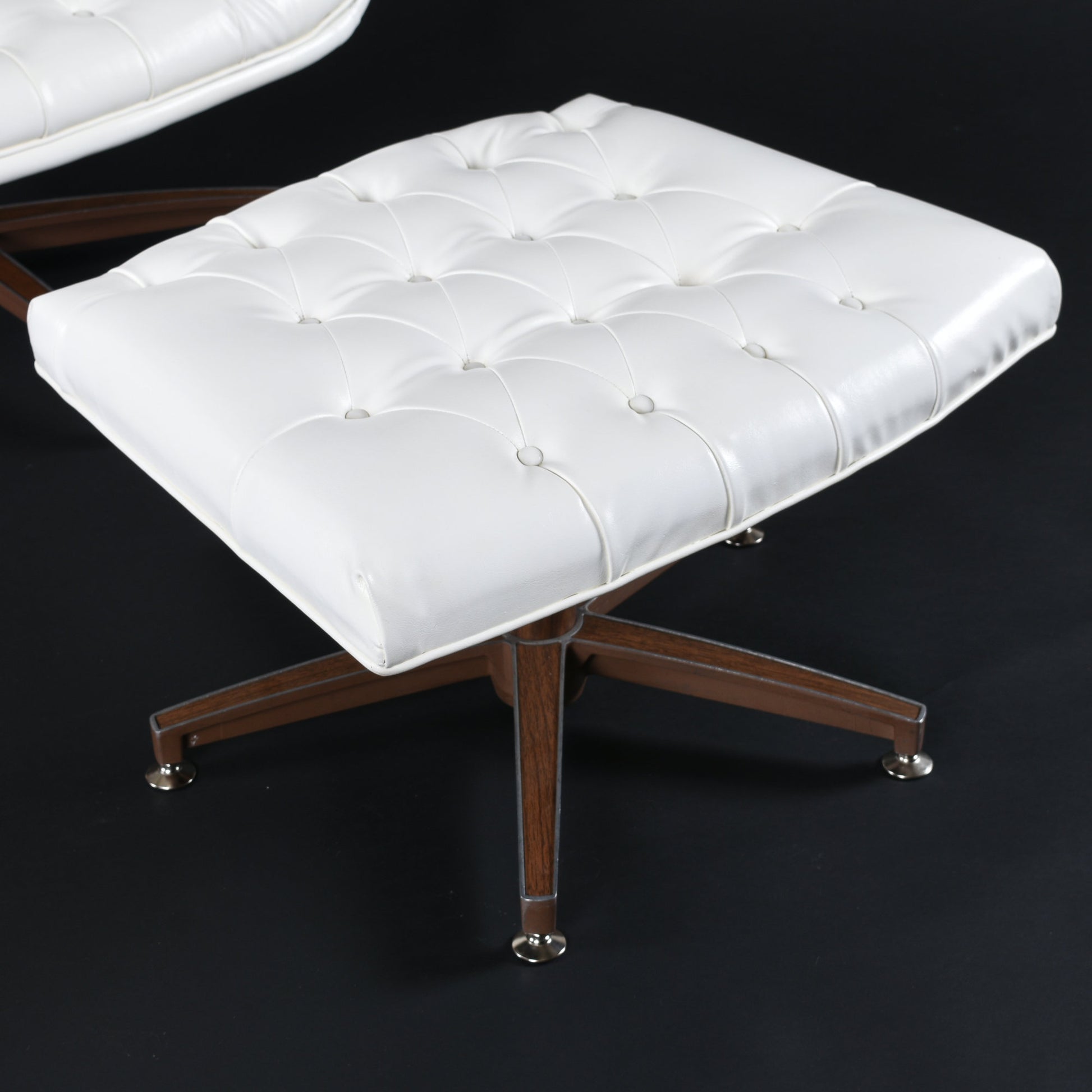 Restored George Mulhauser Style White Tufted Tilt and Swivel Chair with Ottoman