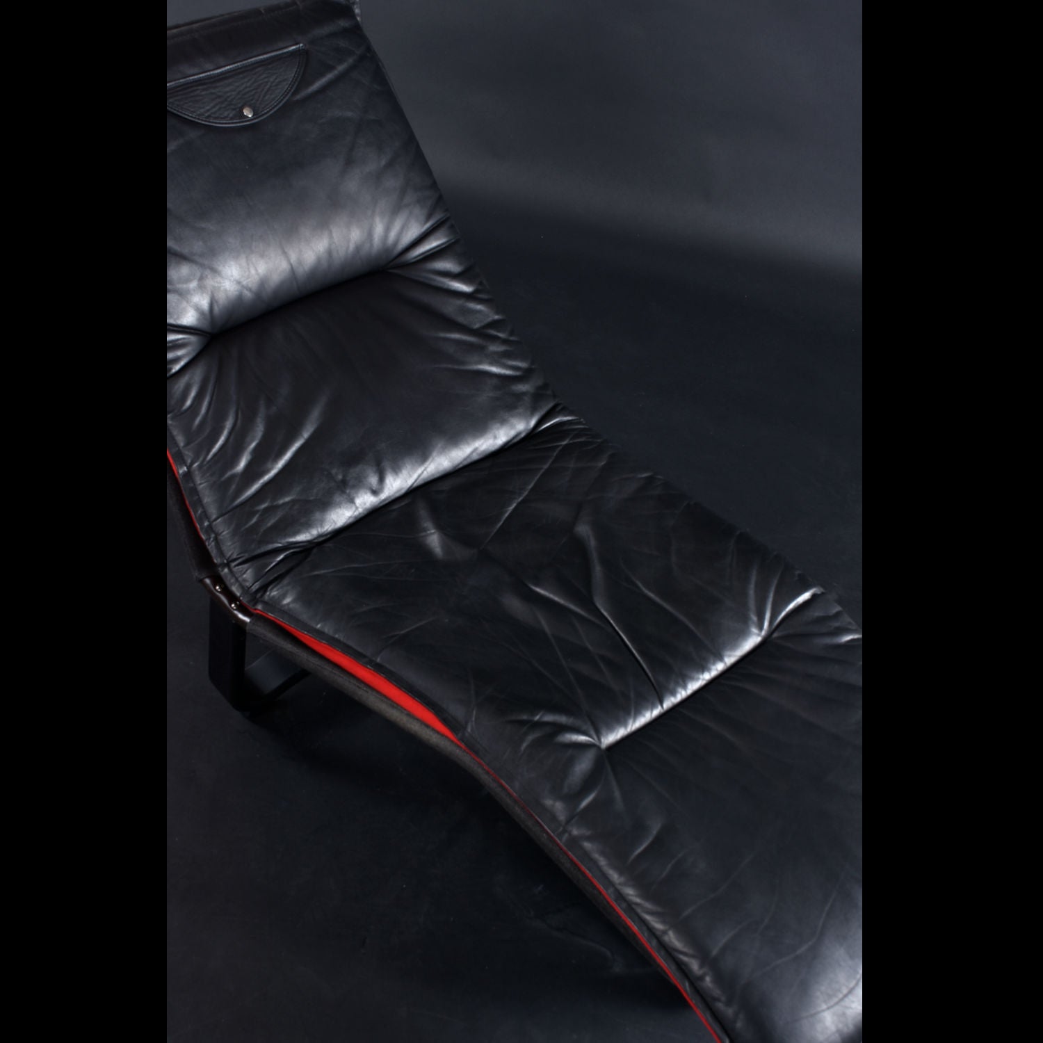 Westnofa Norwegian Black Leather and Red Wool Reversible Scandinavian Modern Chaise Lounge